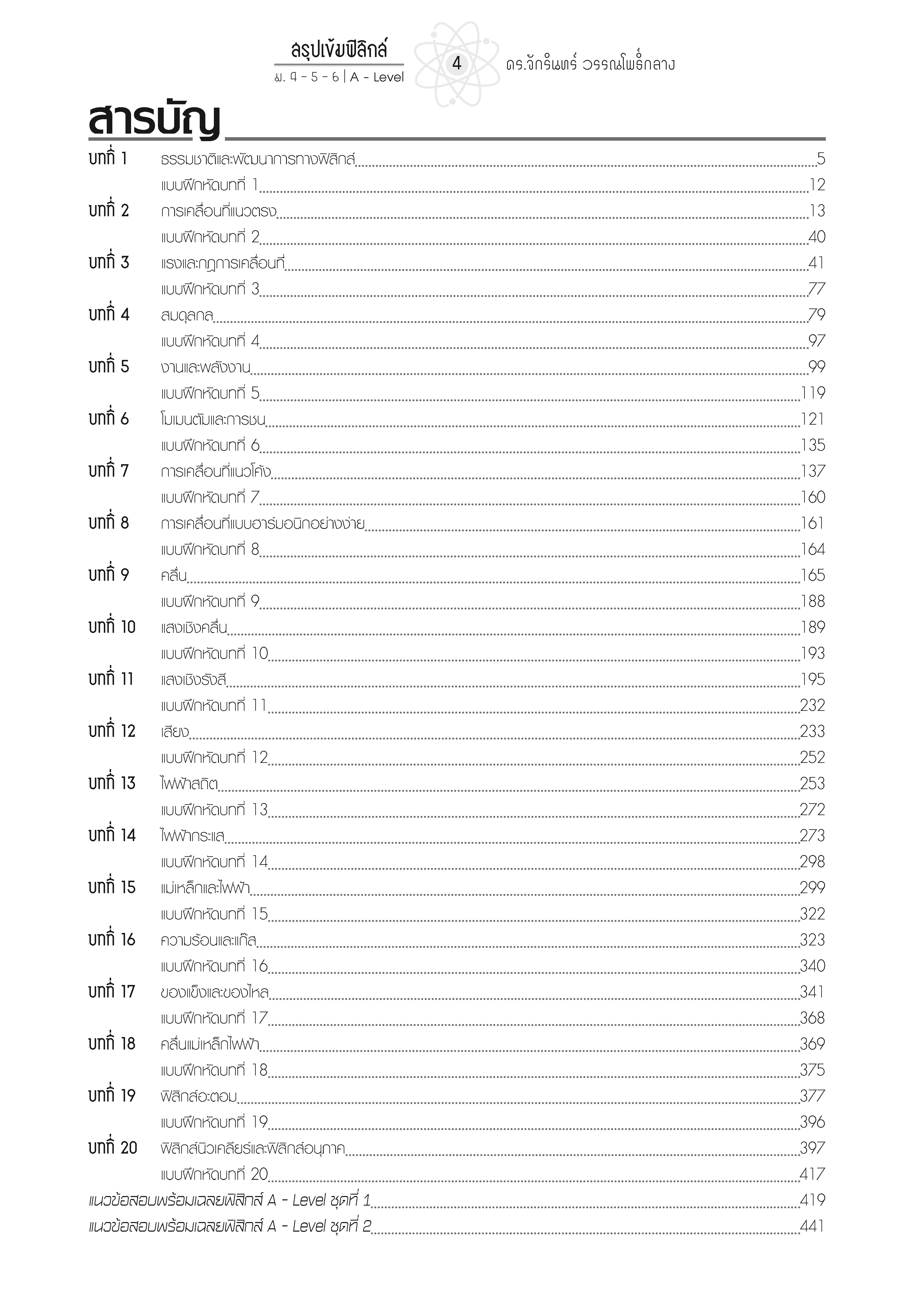 สรุปเนื้อหาวิชาฟิสิกส์ ม.4-6 แบบเข้มข้น ครอบคลุมทุกบท พร้อมสอดแทรกเนื้อหาสำคัญ และเทคนิคการคิดคำนวณนอกหลักสูตร แบบฝึกหัดท้ายบท จากข้อสอบที่มักออกสอบ พร้อมการวิเคราะห์ข้อสอบ แนวข้อสอบ A-Level ในบท พร้อมเฉลยอธิบาย เล่มเดียวจบครบทุกบท สำหรับน้องตั้งแต่ชั้น ม.4 จนถึง ม.6 ใช้เตรียมตัวสอบปลายภาค หรือสอบเข้ามห่าวิทยาลัยทุกระบบ