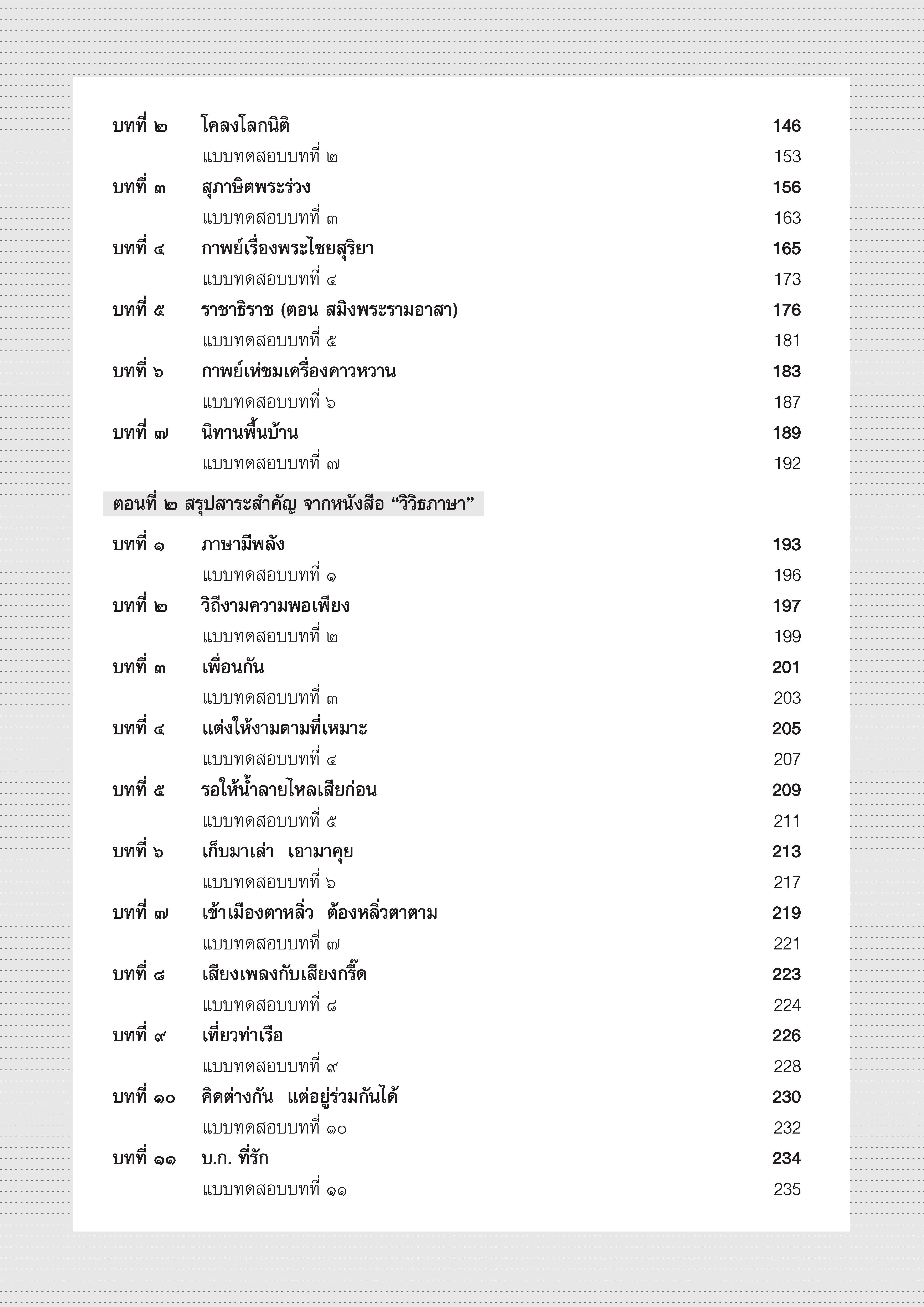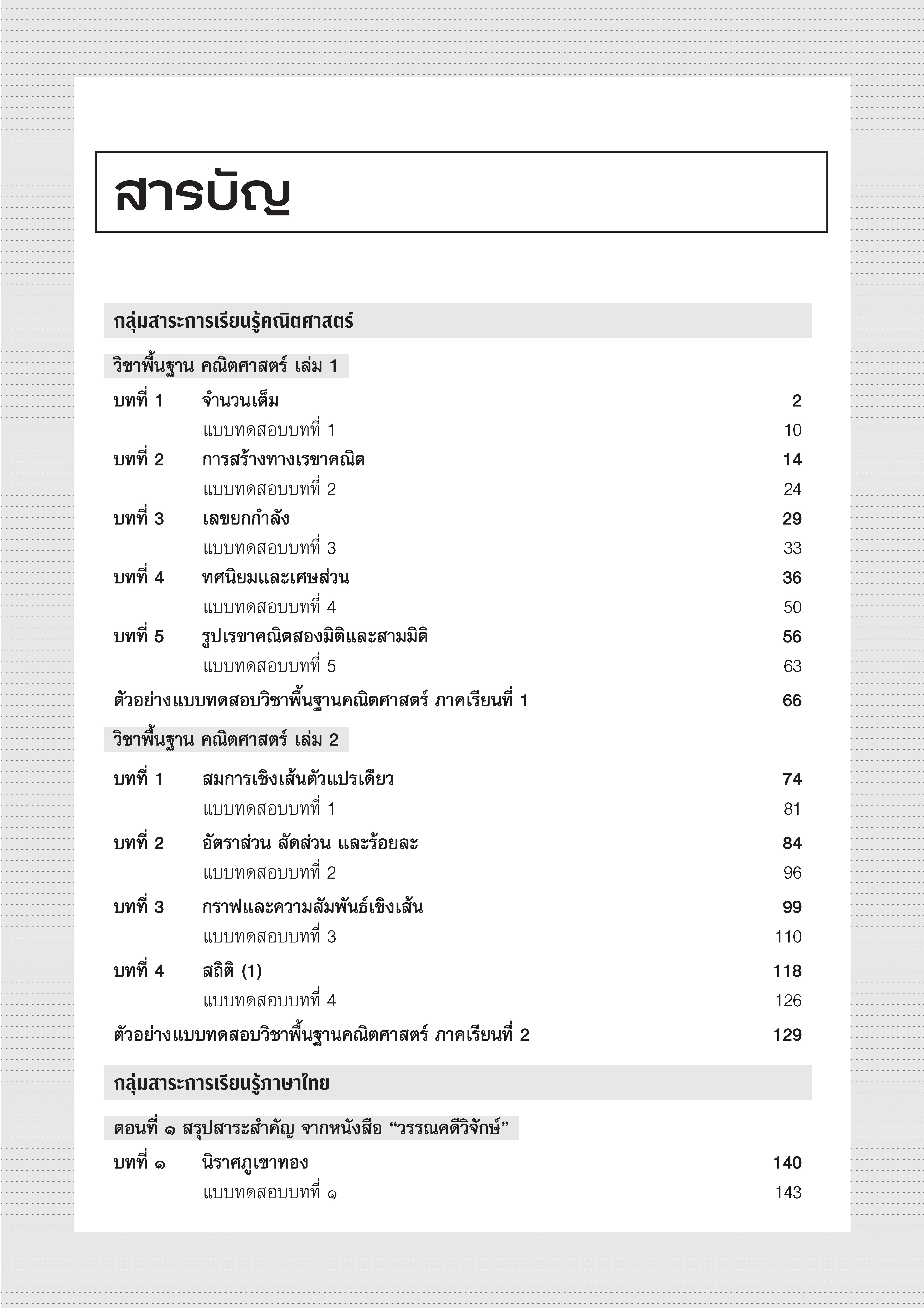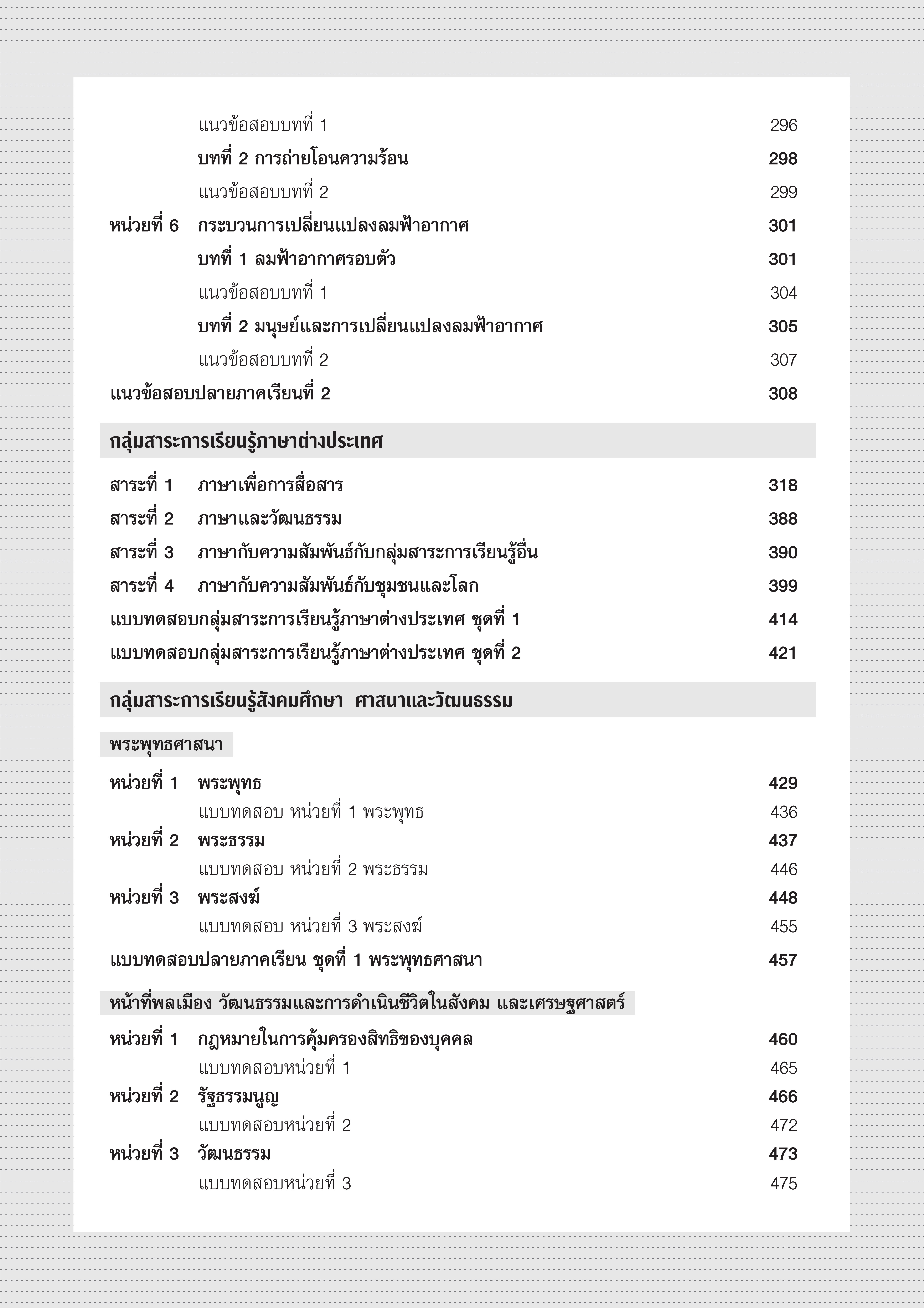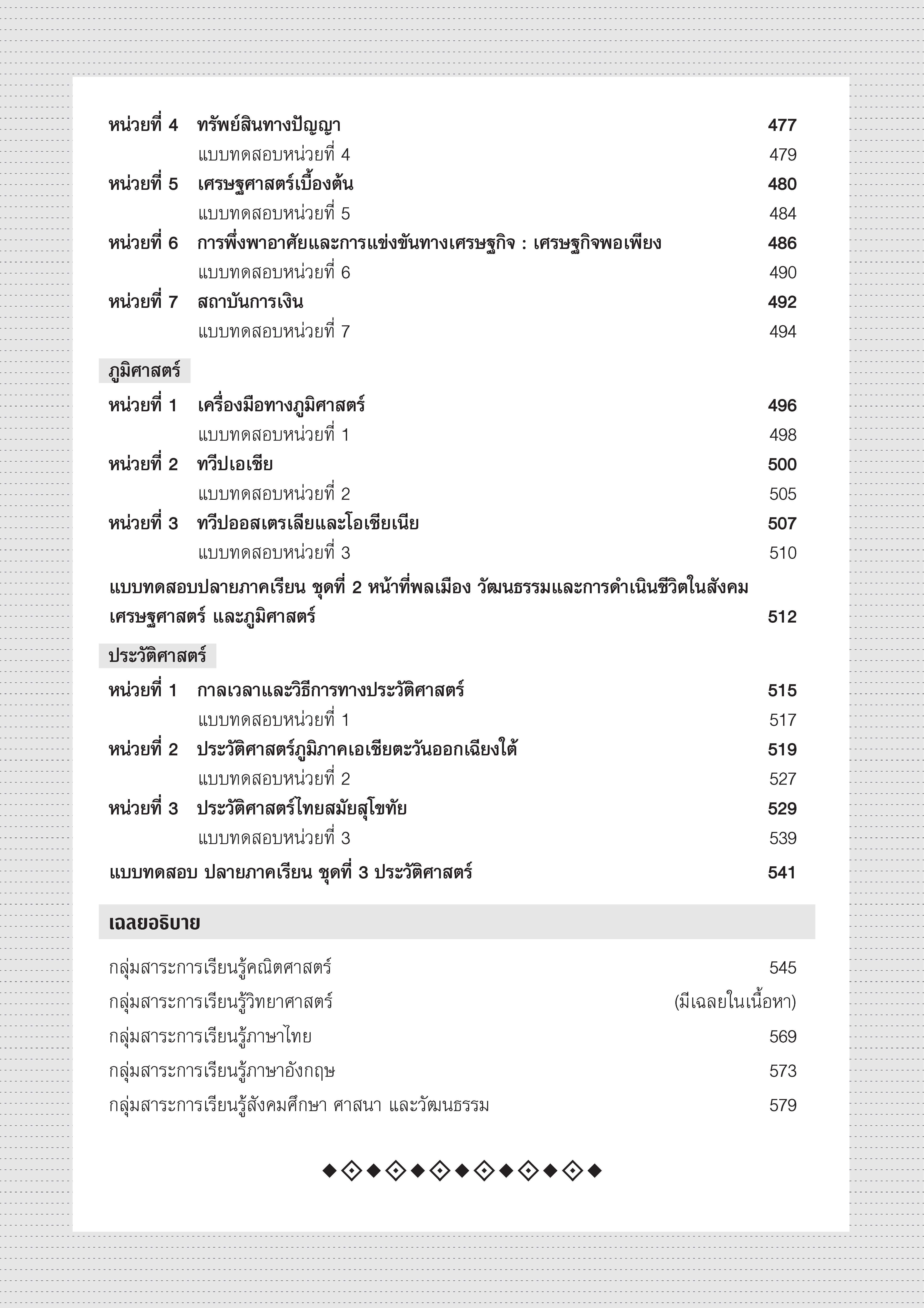 สรุปเนื้อหากระชับครบ 5 วิชาหลัก ตรงตามหลักสูตรปัจจุบัน เหมาะสำหรับอ่านทบทวน พร้อมแบบฝึกหัดท้ายบททุกวิชาและแนวข้อสอบปลายภาค พร้อมเฉลยทุกข้อ
